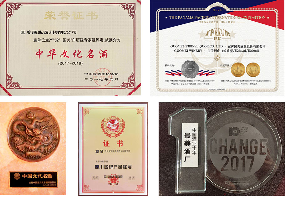 自入驻长宁县以来,依托得天独厚、不可复制的生态环境,宜宾国美酒业攻坚克难、创新创业,在品质、品牌、营销上持续发力,斩获了一系列行业大奖。拥有“四川省著名商标”,产品为“中华文化名酒”、“中国历史名酒”、“四川名牌产品”。荣获“米兰世界之星”大奖,“中国酒业十年最美酒厂”,“2024年获得巴拿马太平洋万国博览会金奖”等多项荣誉。在经济发展、社会公益、文化建设等多方面获得社会各界认可。